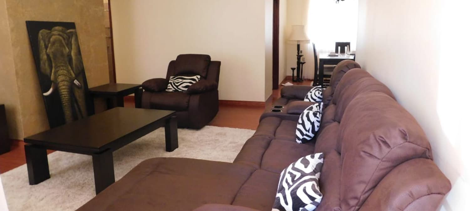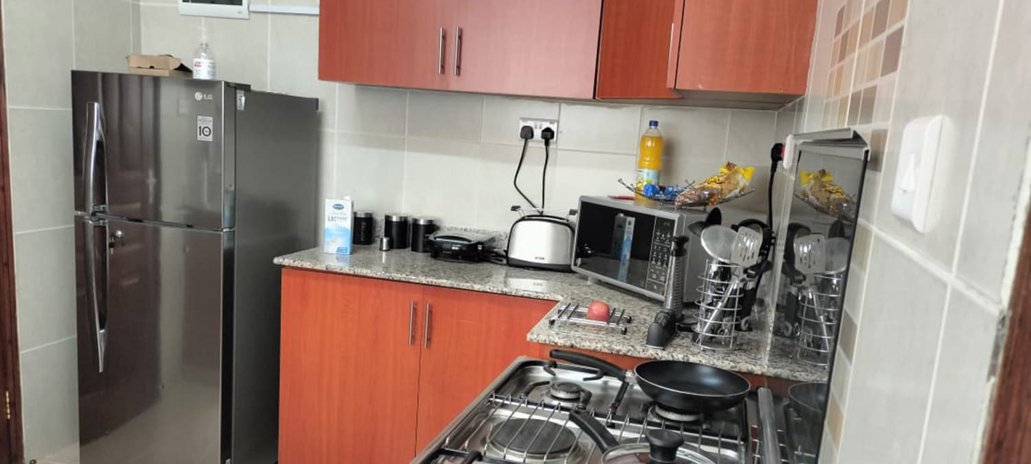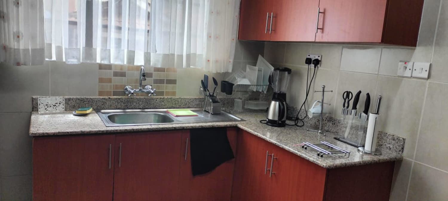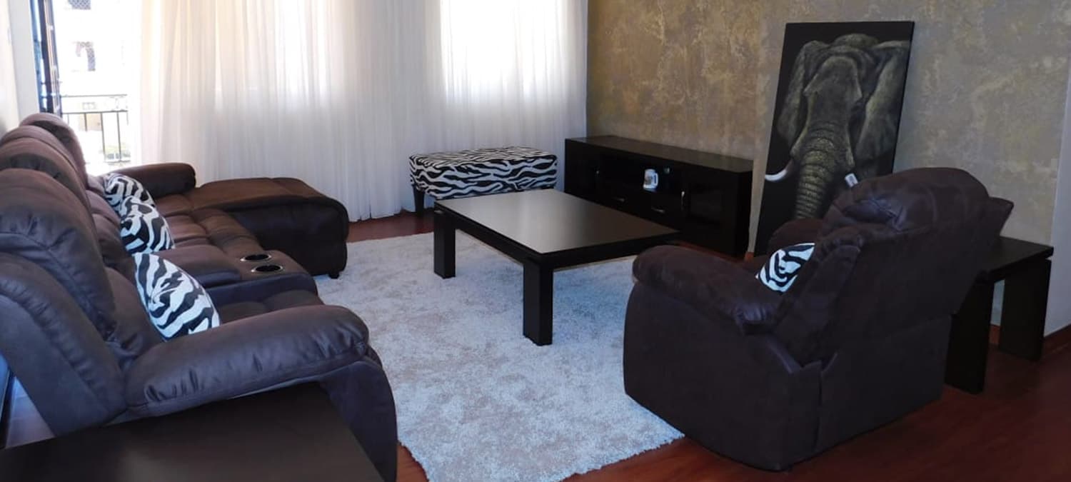 Fully furnished 3 bedroom apartment (1 bedroom converted to an office with wi-fi) 2 bathrooms, located at Fourways Junction Estate, Kiambu Road.